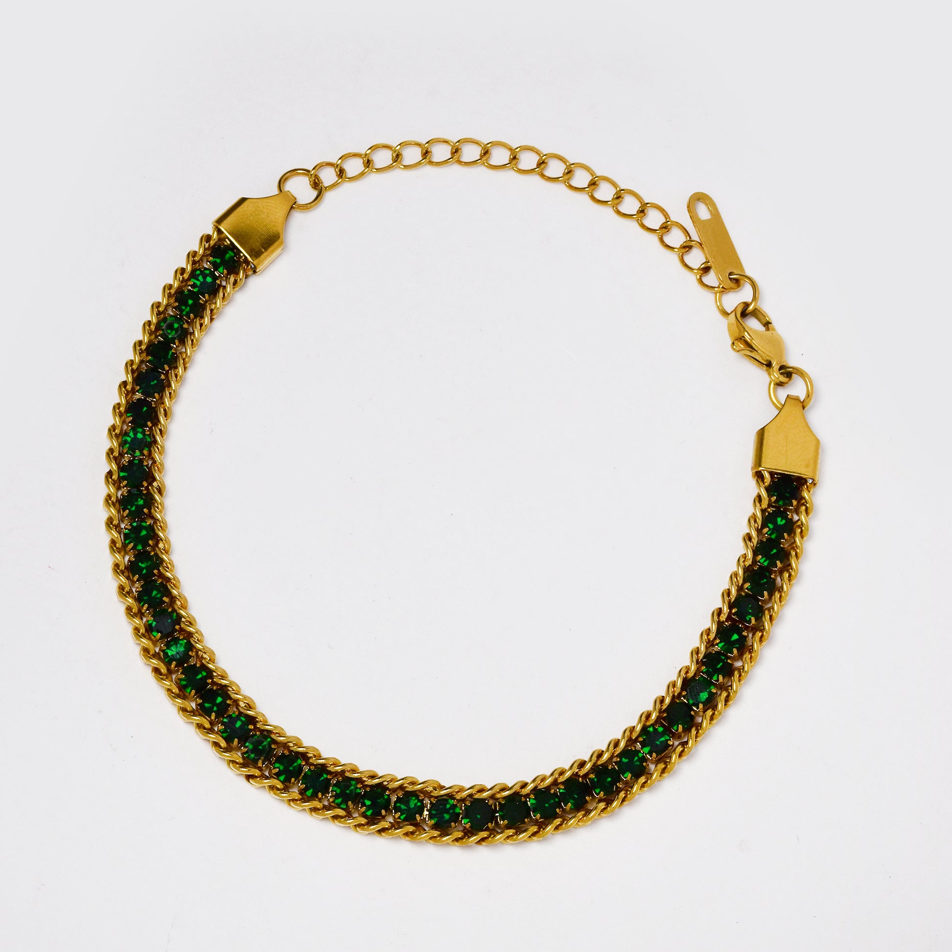 SSYB6304 - St Steel 18cm + 5cm x 6mm chain link framed CZ bracelet