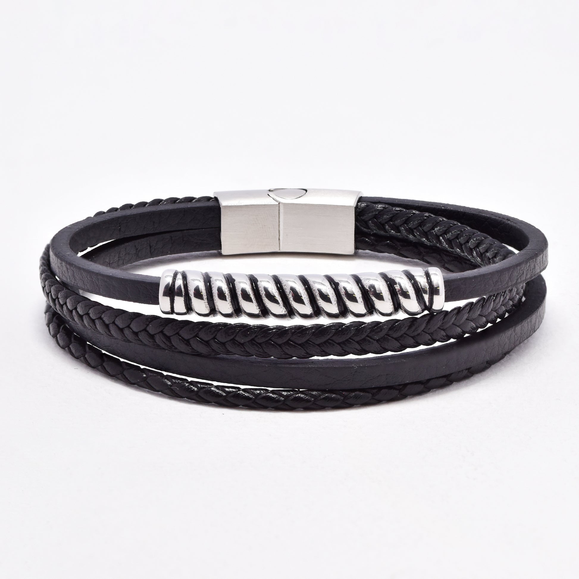 SSYB6484 - St Steel 21cm multi strand leather bracelet