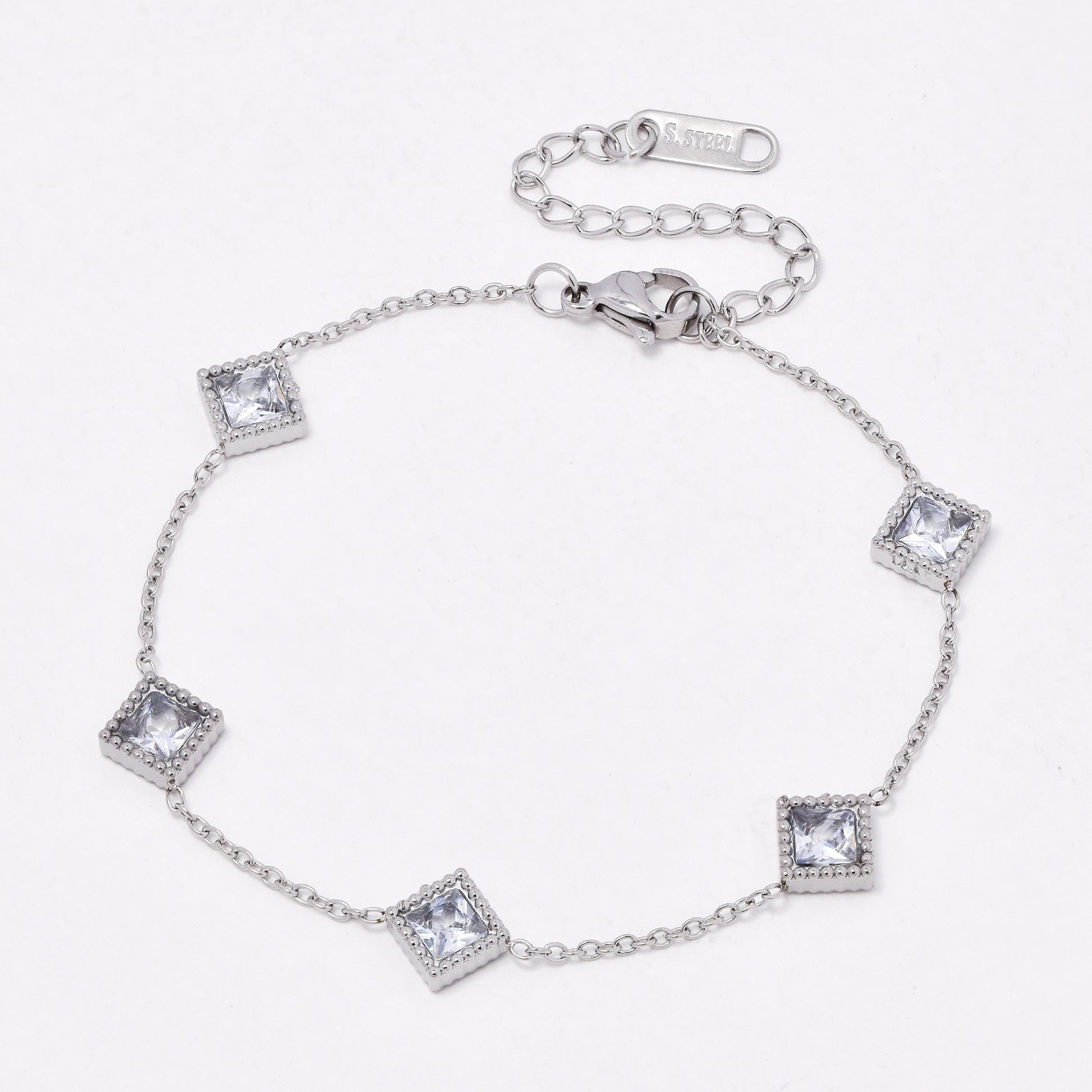 SSYB6542 - St Steel 17.5cm + 5cm CZ bracelet