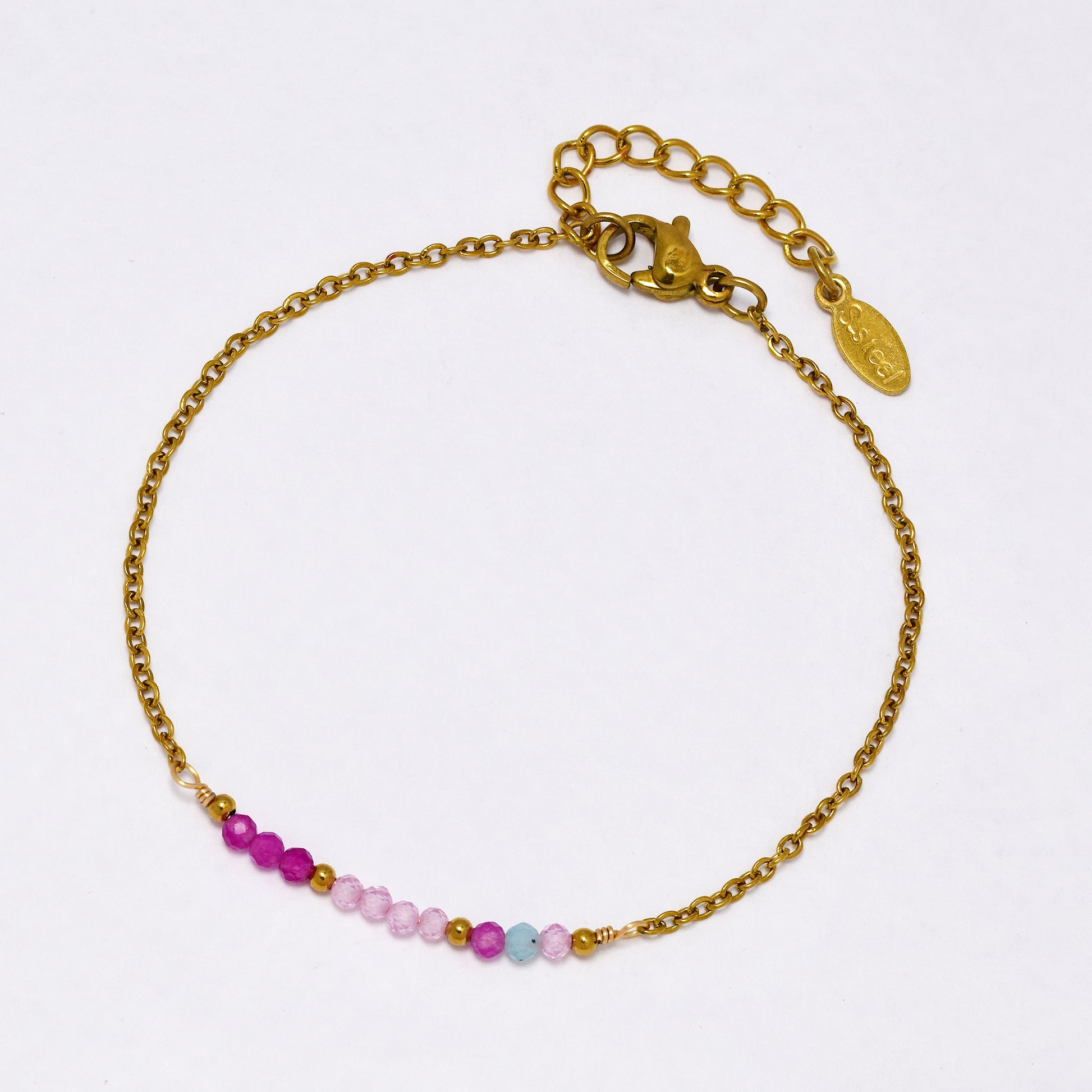 SSYB6940-Steel 17cm + 3cm mid section faceted glass bead bracelet