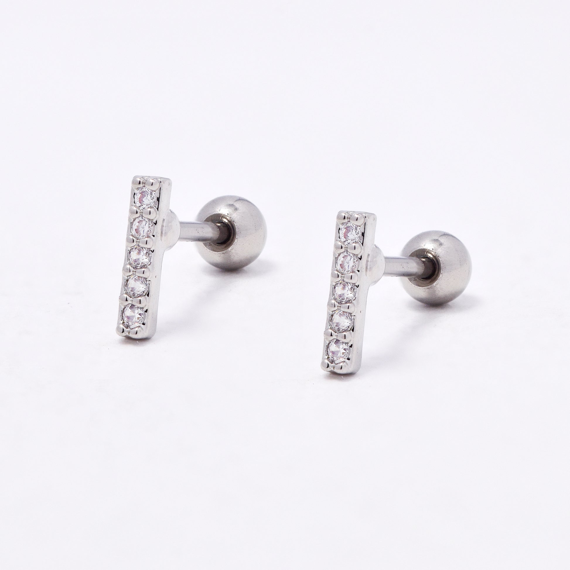 SSYBJ6663 - St Steel 2 pack 6mm x 1.2mm CZ bar cartilage piercing