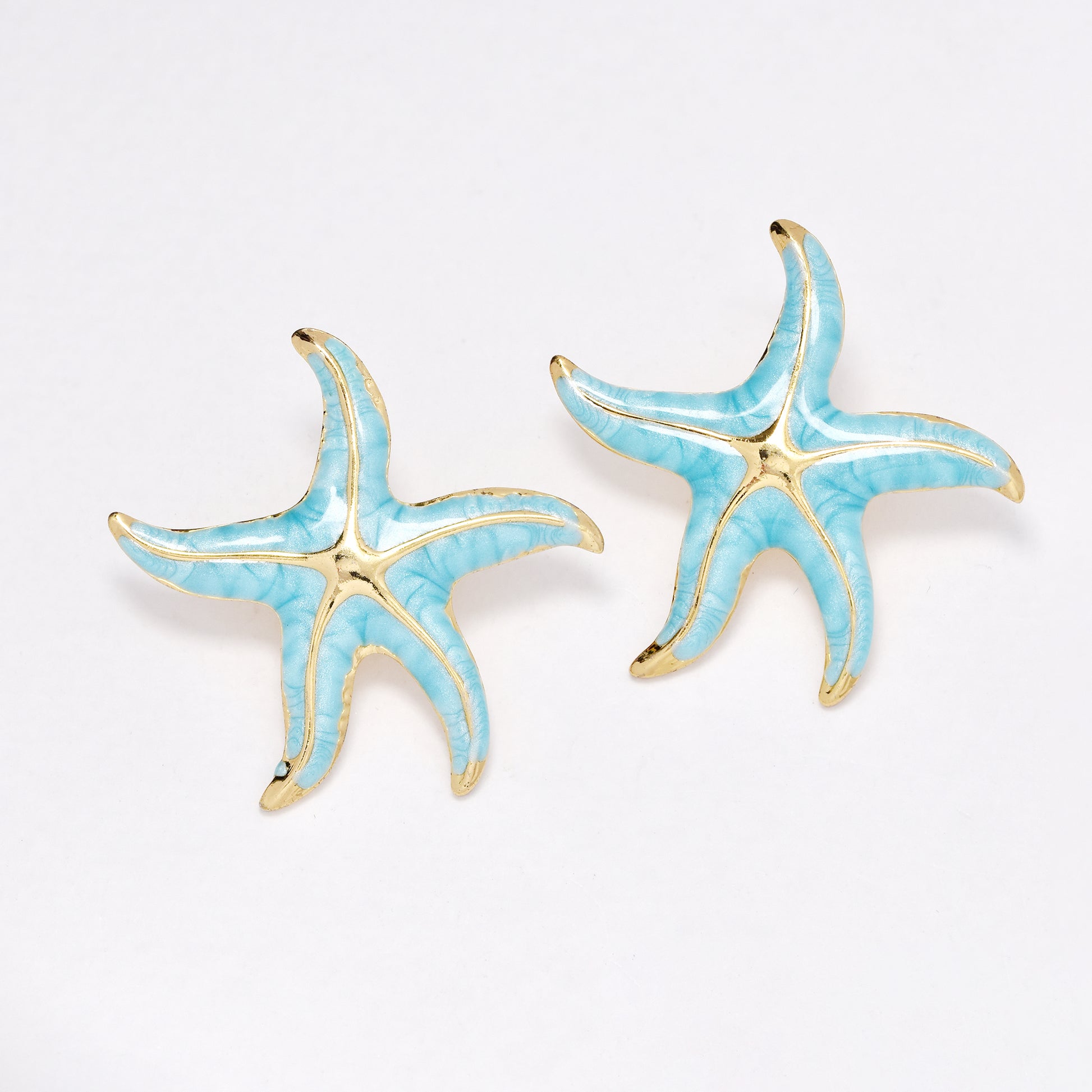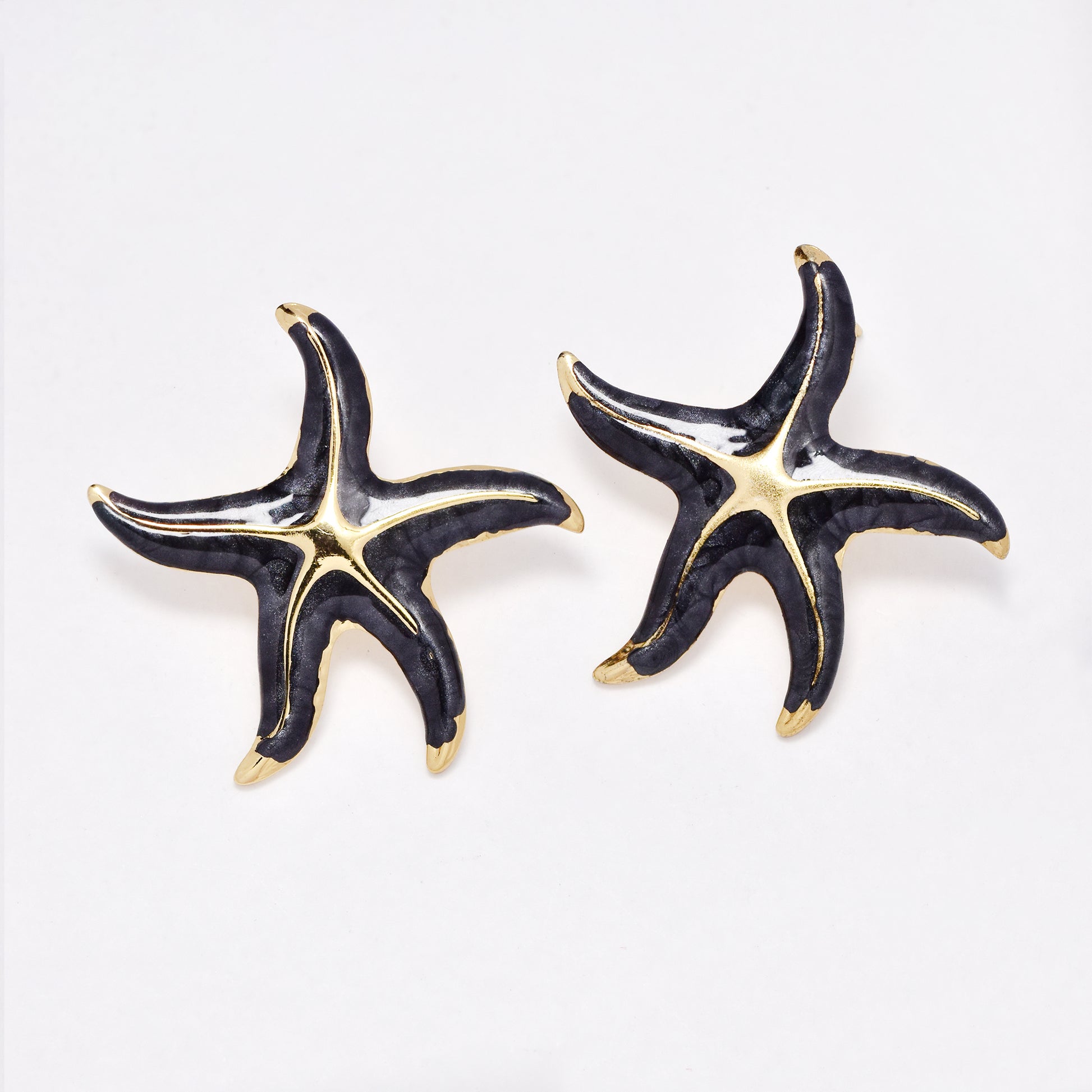 SSYE6385 - St Steel 34.2mm x 34.5mm colour starfish earring