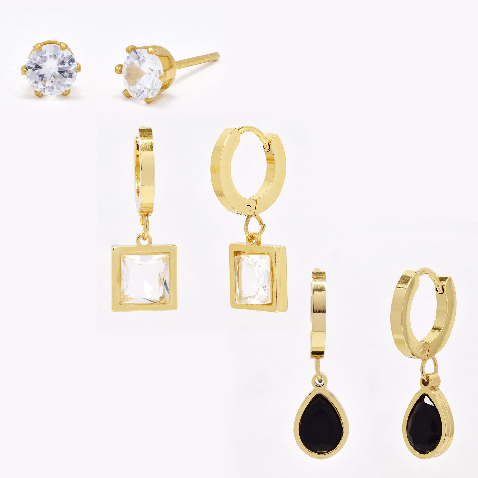 SSYE6388 - St Steel 3 pack huggie and stud earring set
