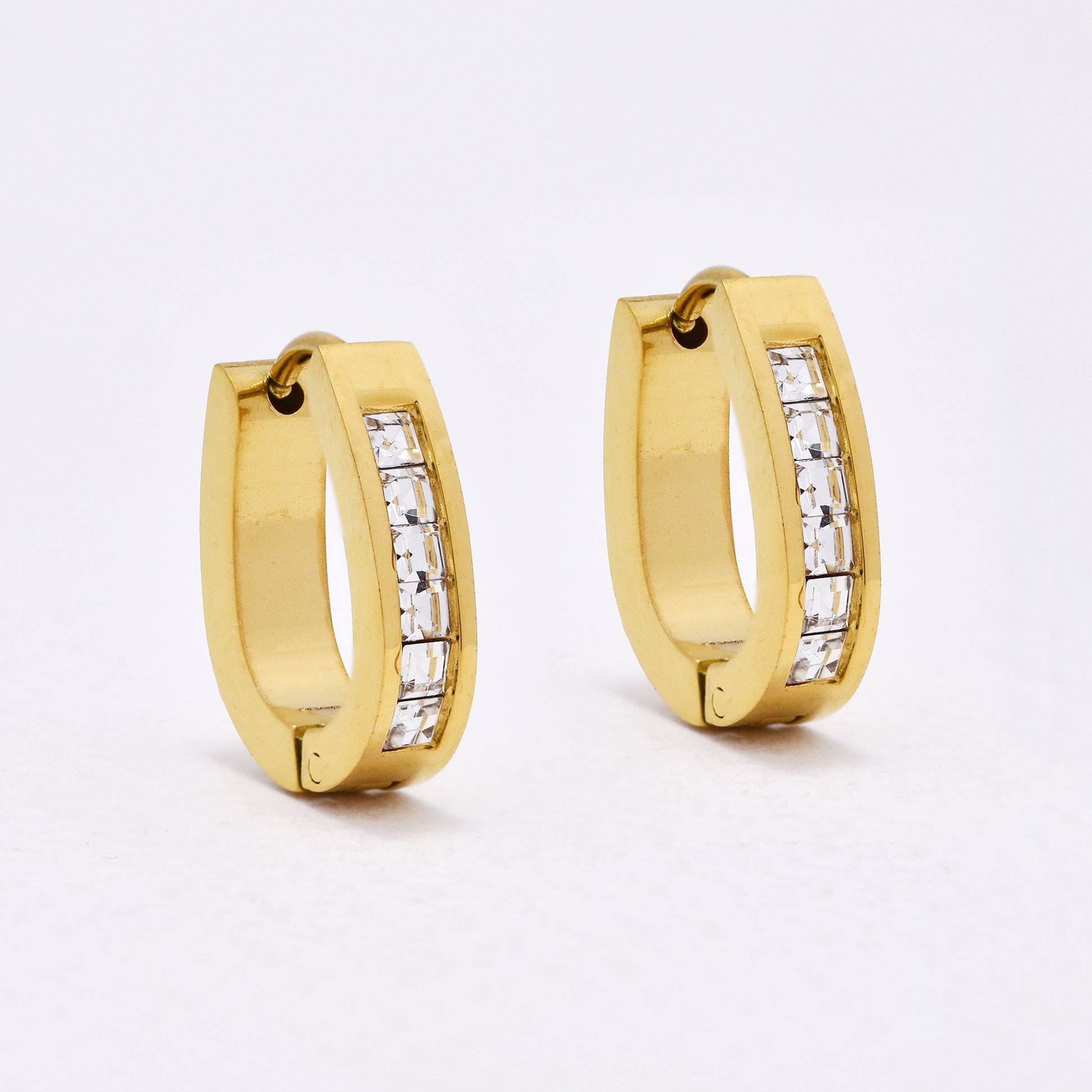 SSYE6510 - St Steel 16mm x 4mm CZ oval huggie earring