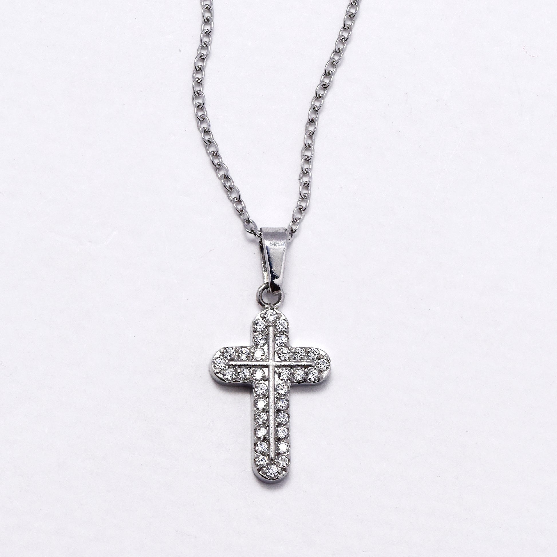 SSYN6031 - St Steel 45cm + 5cm CZ cross pendant necklace