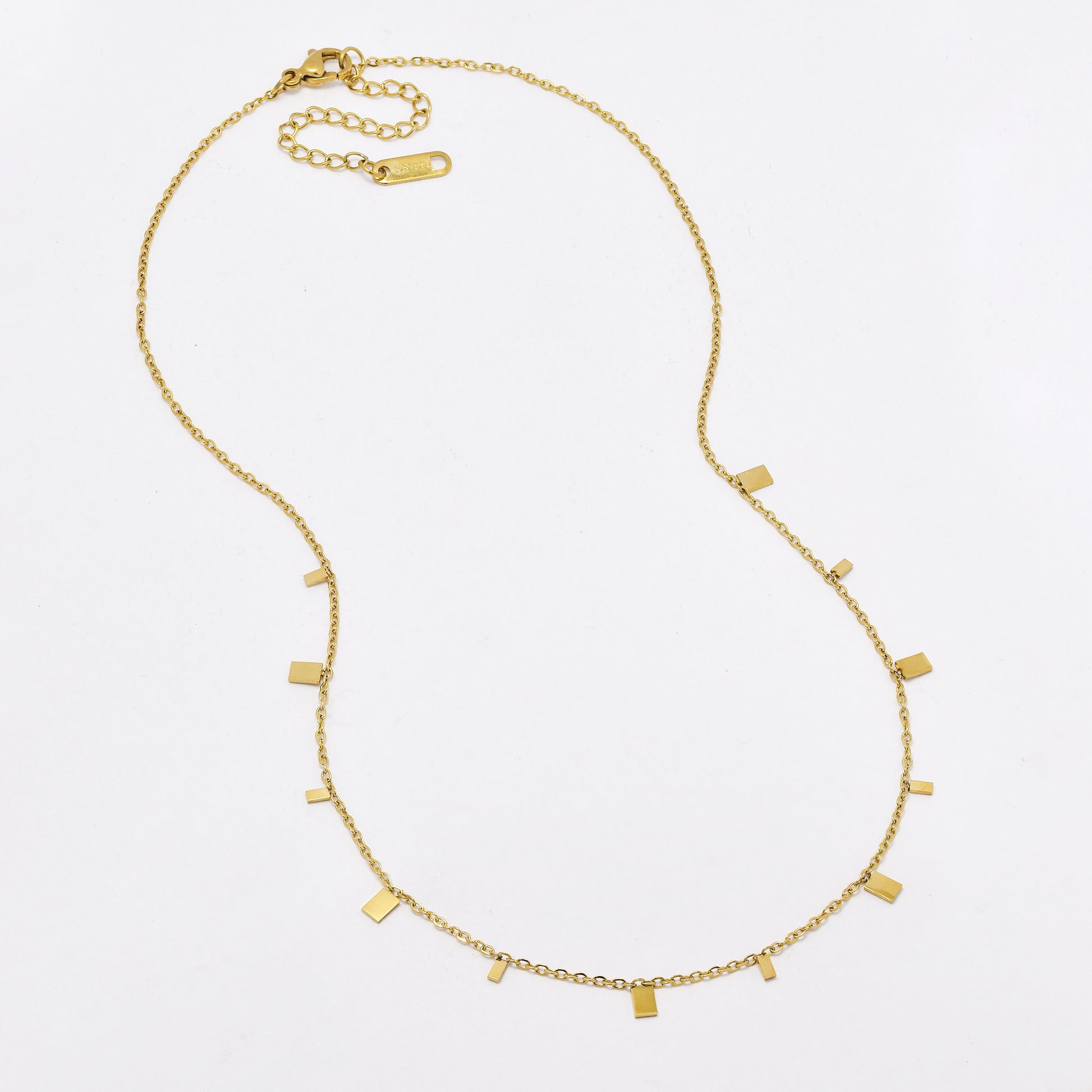 SSYN6391 - S Steel 42cm + 5cm rectangular disk necklace