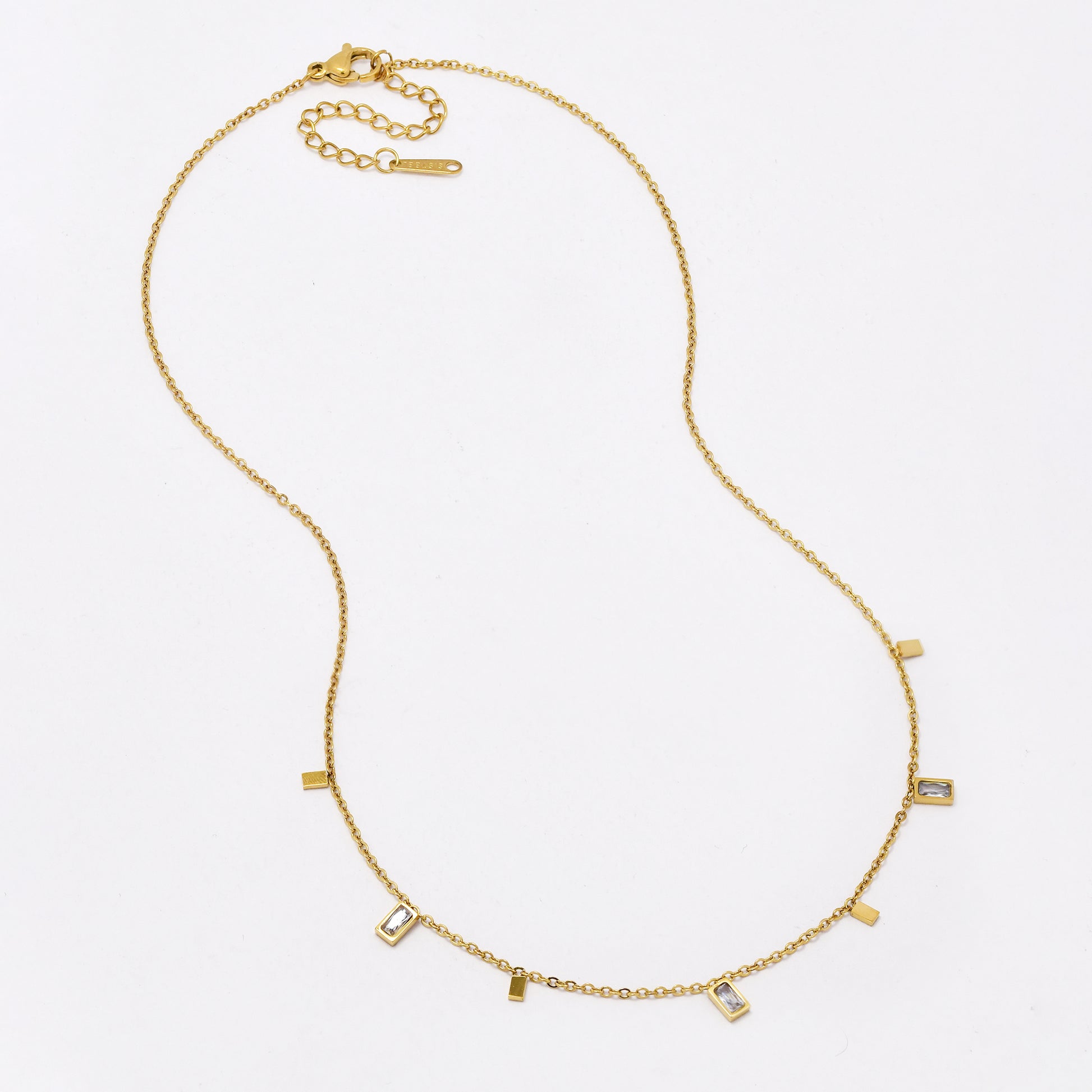 SSYN6394 - S Steel 40cm + 5.5cm rectangular CZ disk necklace