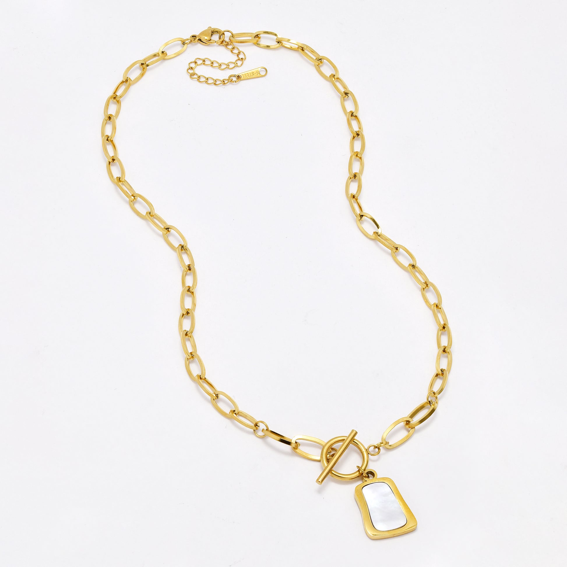 SSYN6397 - S Steel 42xm + 5cm oval link disk necklace