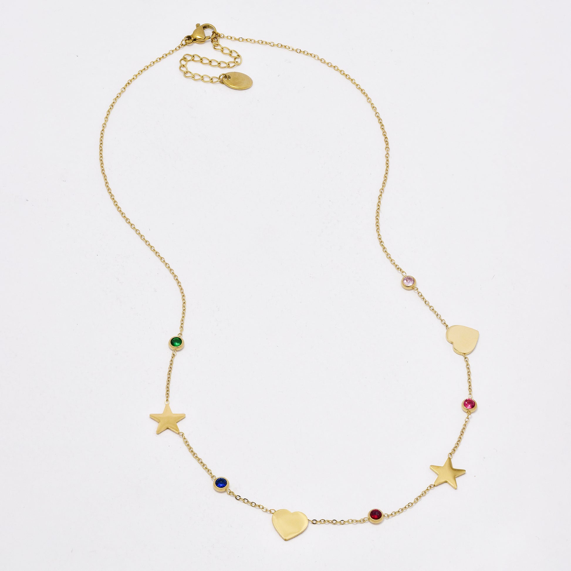 SSYN6414 - St Steel heart & star disk CZ necklace