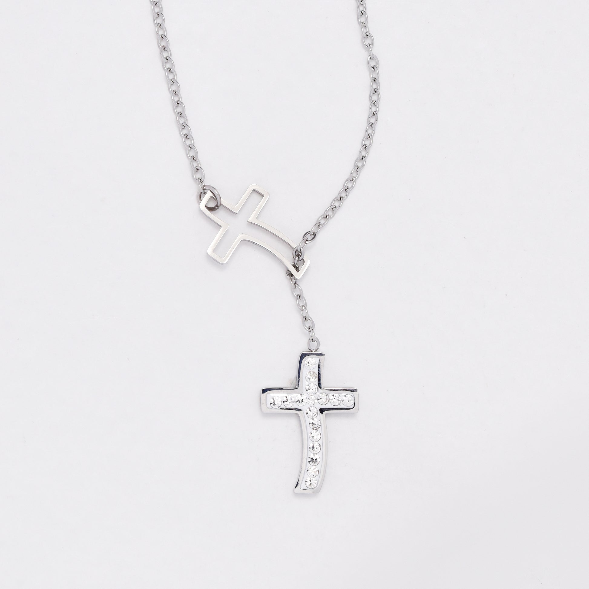 SSYN6416 - St Steel pull-through crystal cross necklace