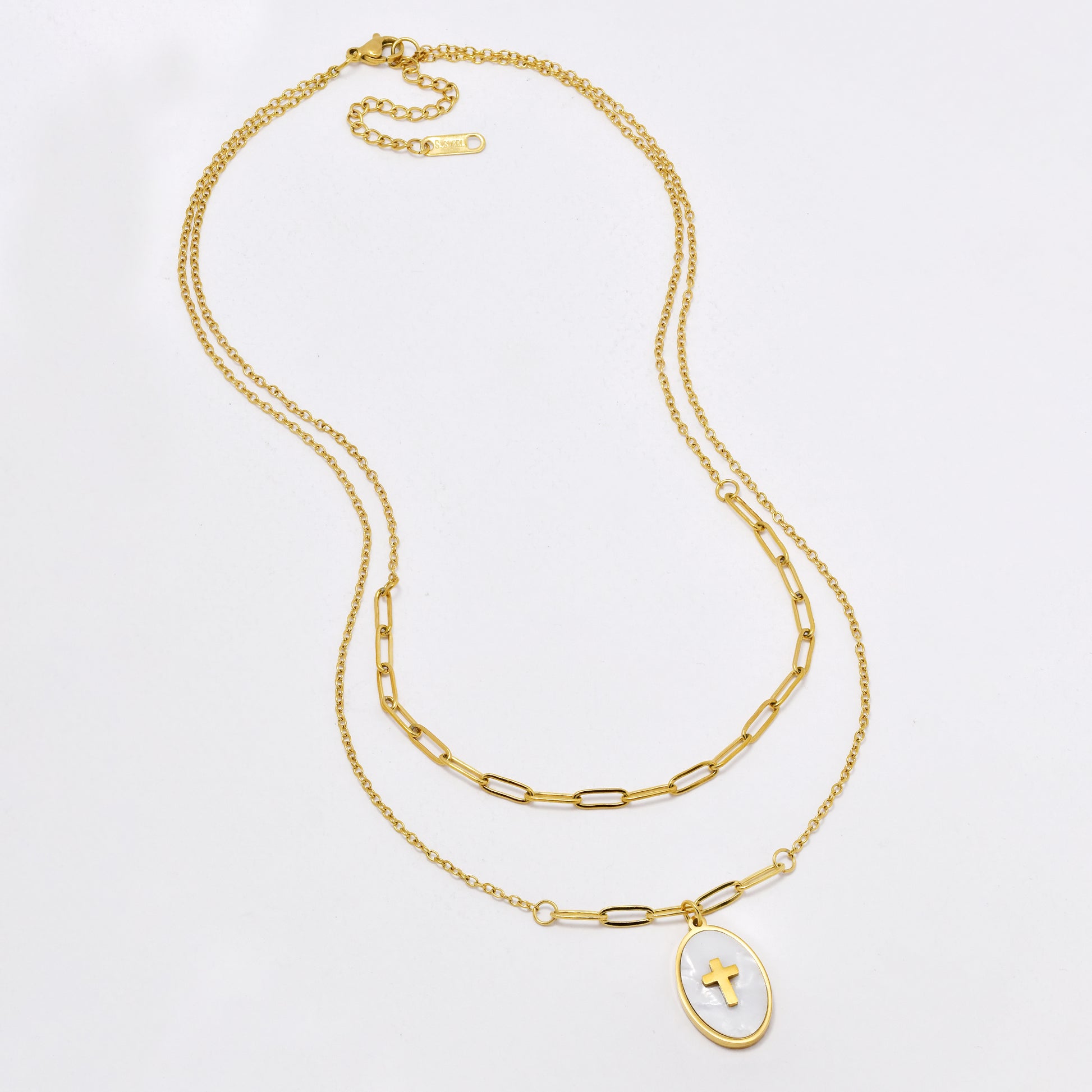 SSYN6427 - St Steel 44cm + 5cm layered cross necklace