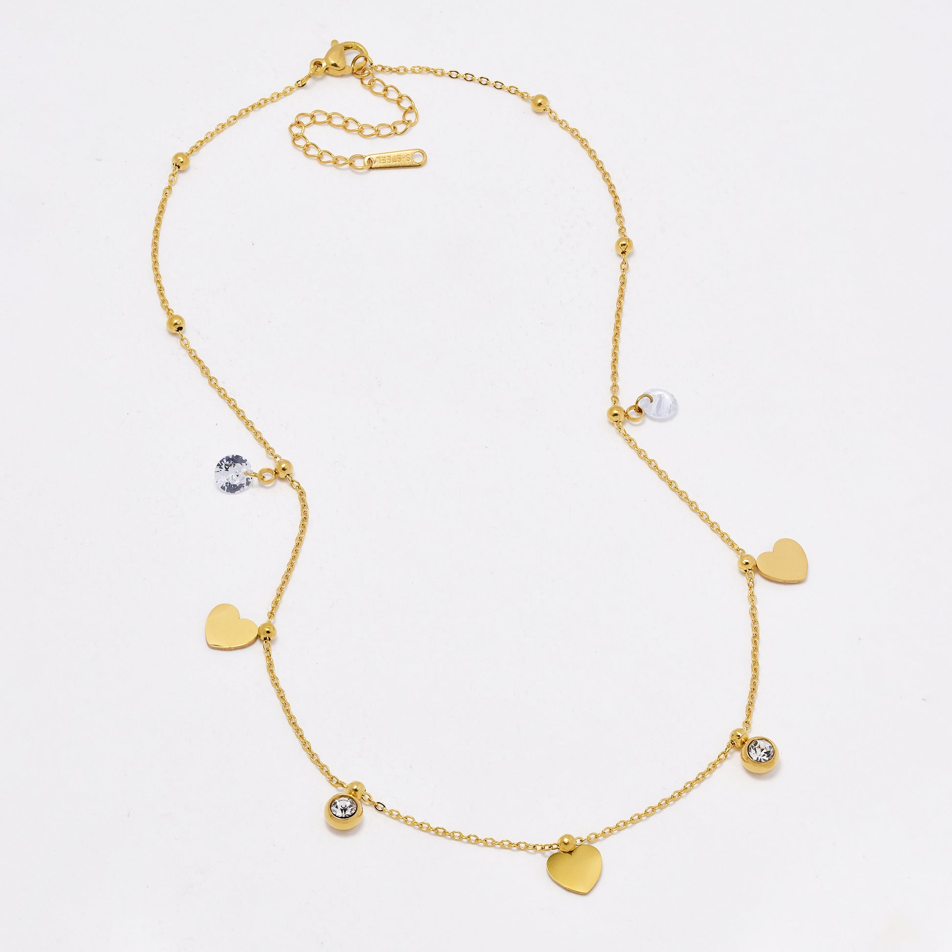 SSYN6442 - St Steel 40cm + 5cm heart & crystal necklace