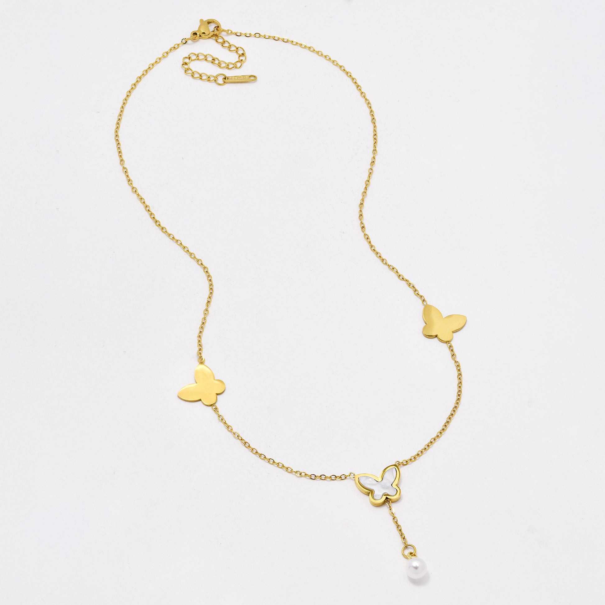 SSYN6443 - St Steel 41cm + 5cm butterfly necklace