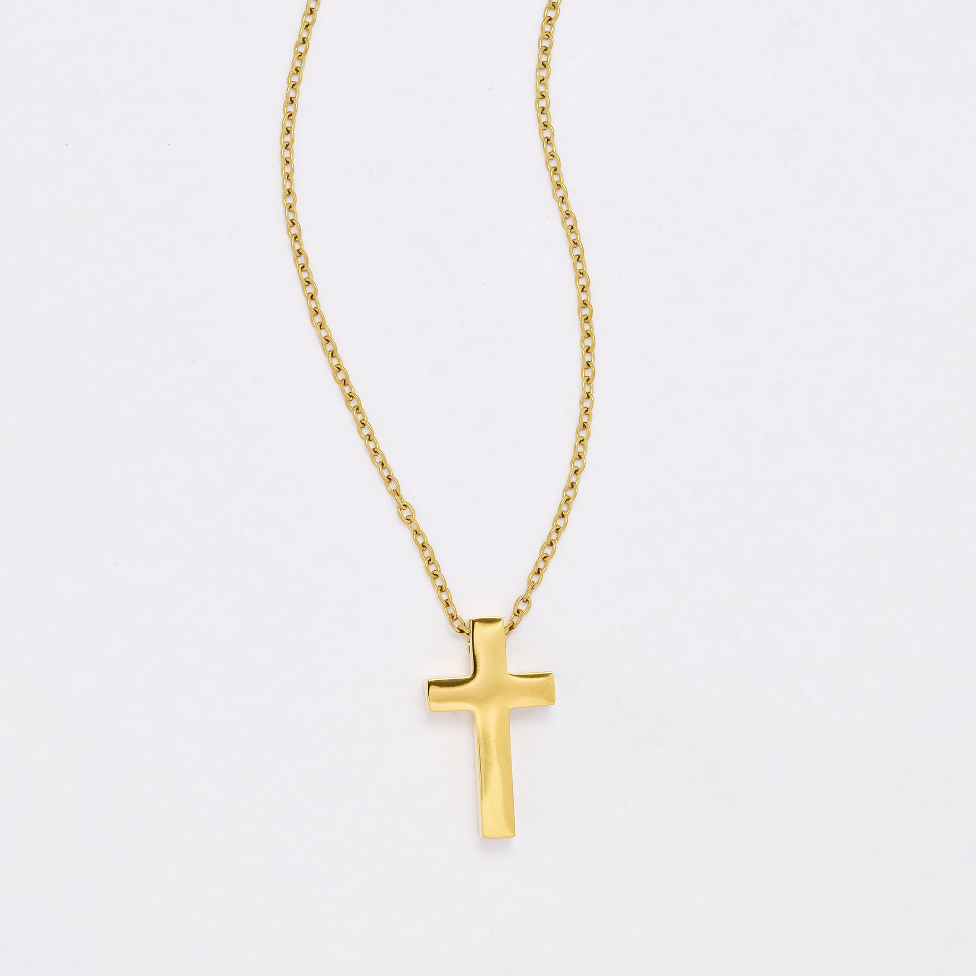 SSYN6444 - St Steel 40cm +5cm solid cross necklace
