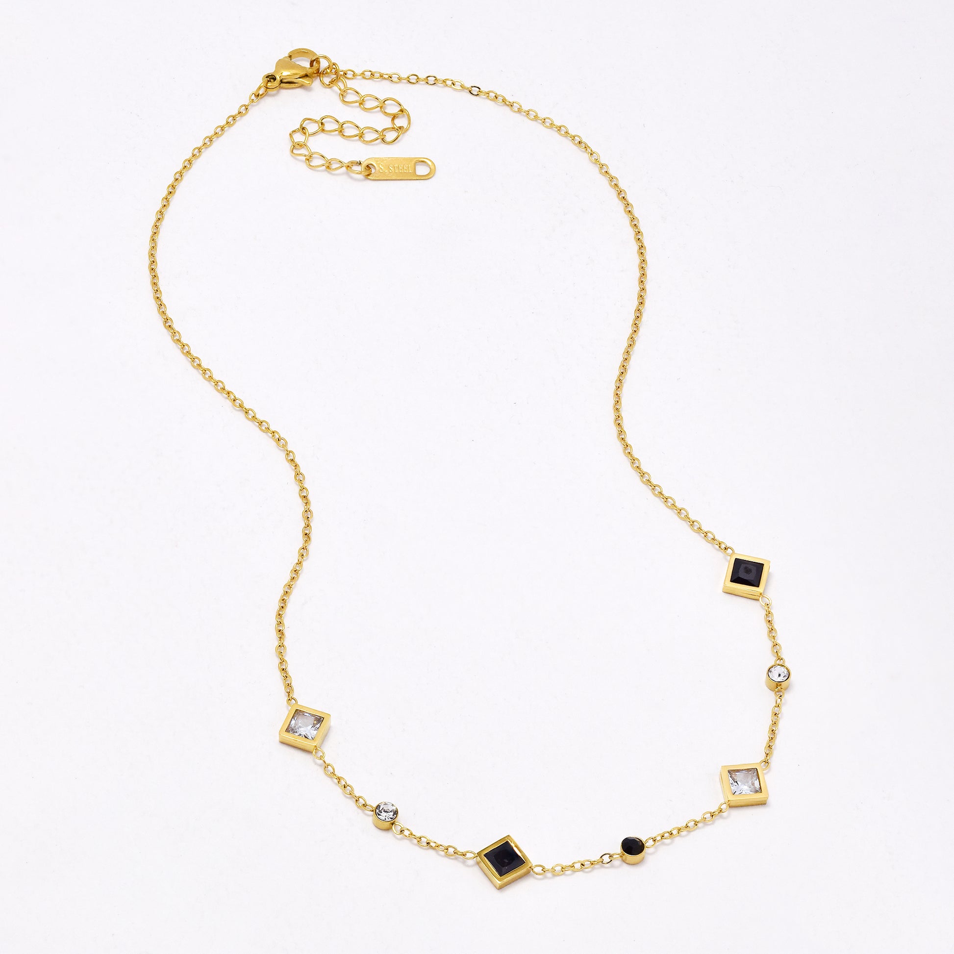 SSYN6474 - St Steel 38cm + 5cm diamond & round CZ necklace