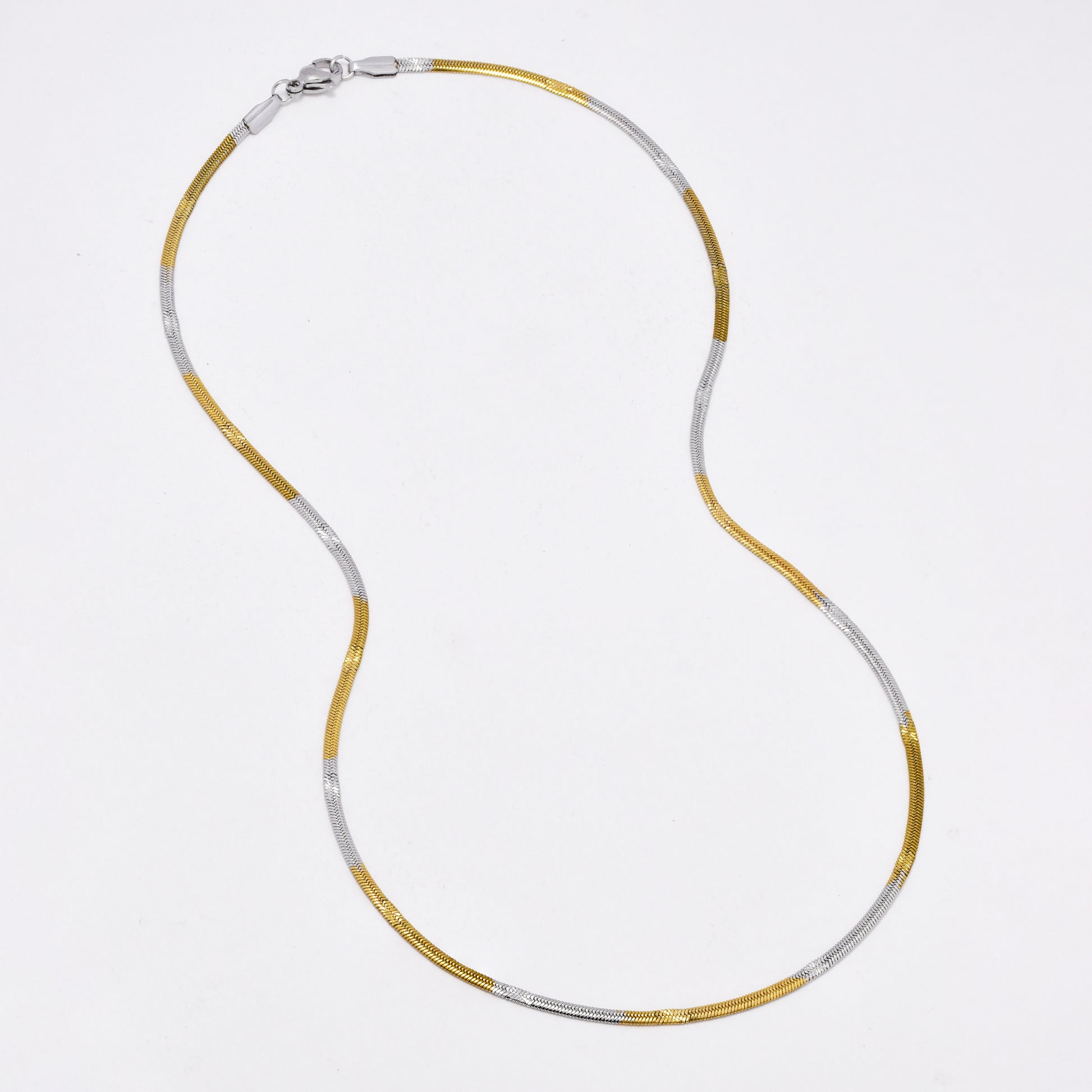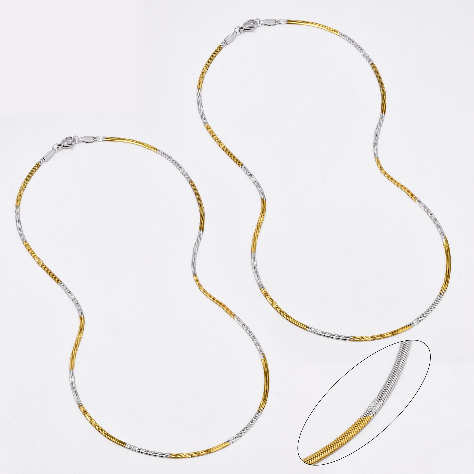 SSYN6499 - St Steel 2 pack 45cm x 2.5mm 2 tone stamped herringbone necklace