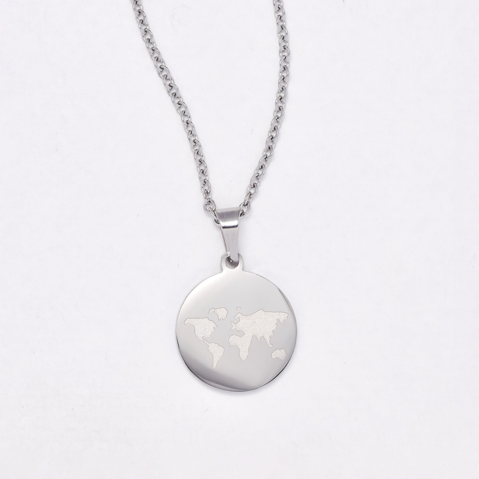 SSYN6628 - St Steel 45cm + 5cm world map necklace