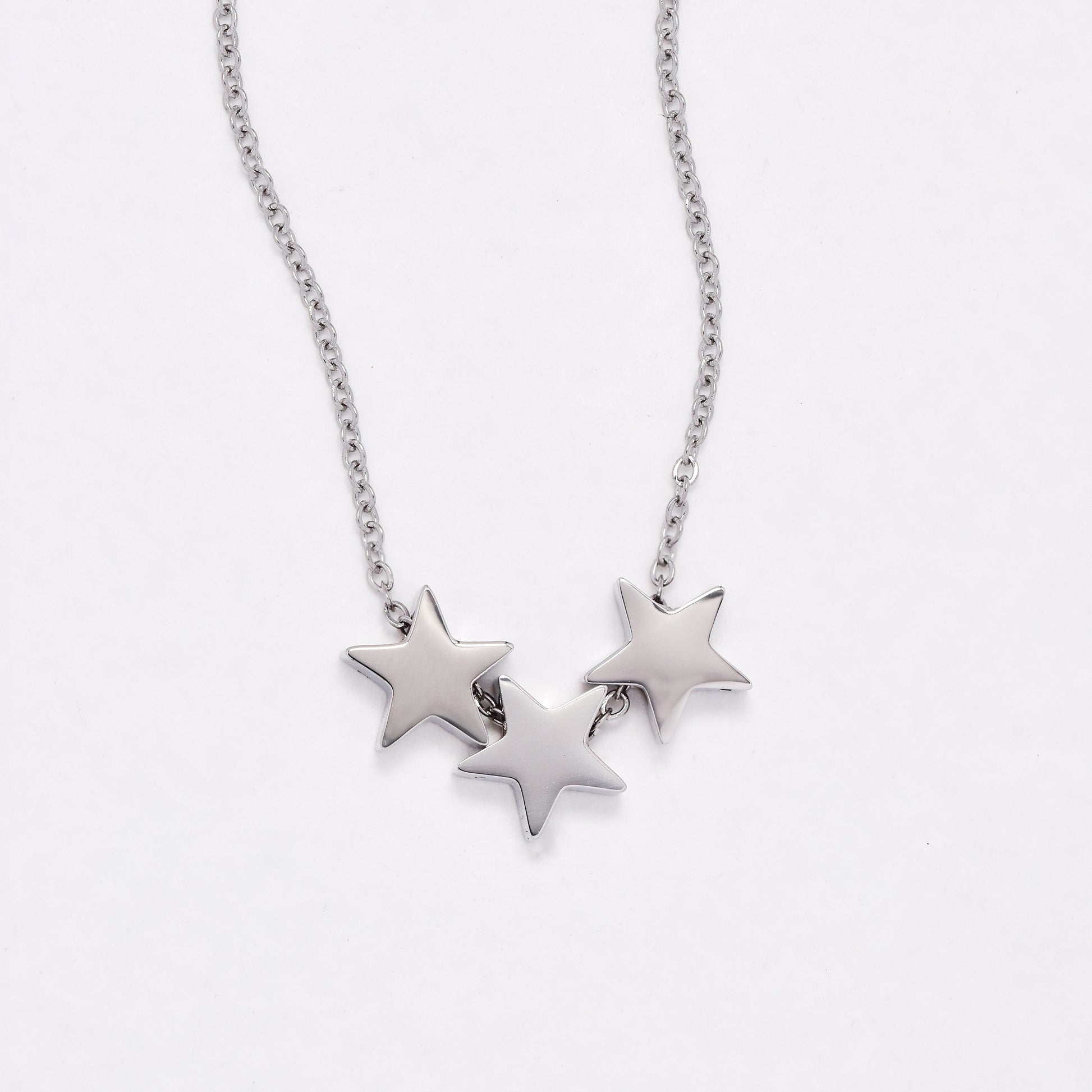 SSYN6689 - St Steel 43.5cm + 6cm 3 star necklace