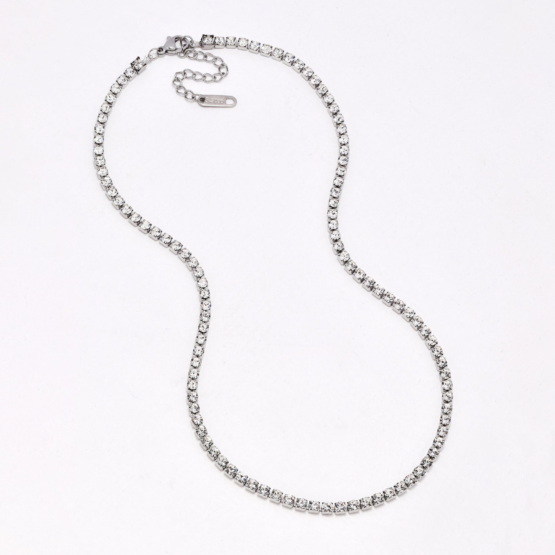 SSYN6916 - Steel 40cm + 5cm x 3mm CZ tennis necklace
