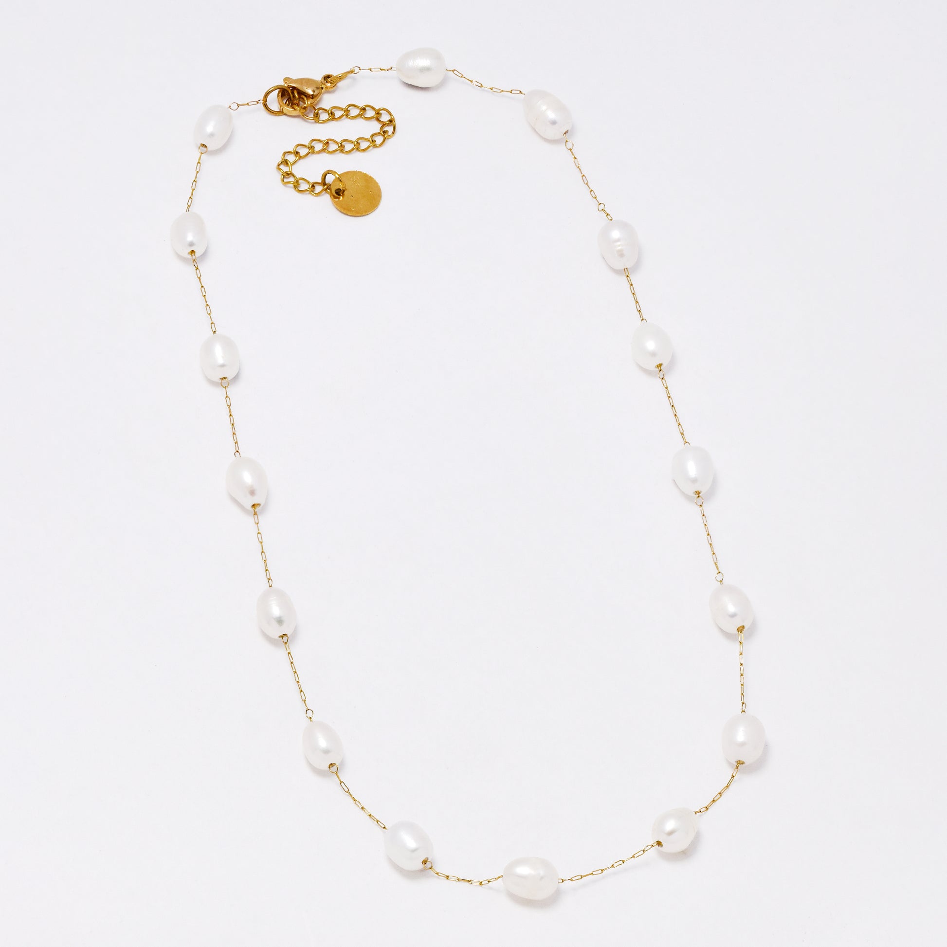 SSYN6941 - Steel 37.5cm + 5cm, approx 8mm x 6mm freshwater pearl necklace