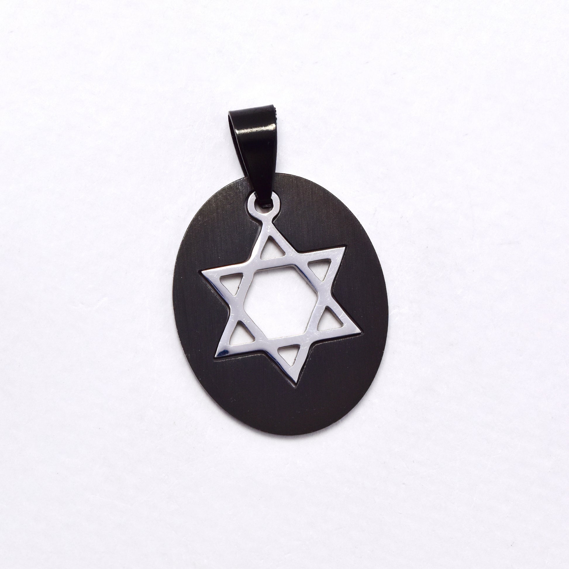 SSYP6067 - St Steel 32mm x 26mm Star of David cutout disk pendant