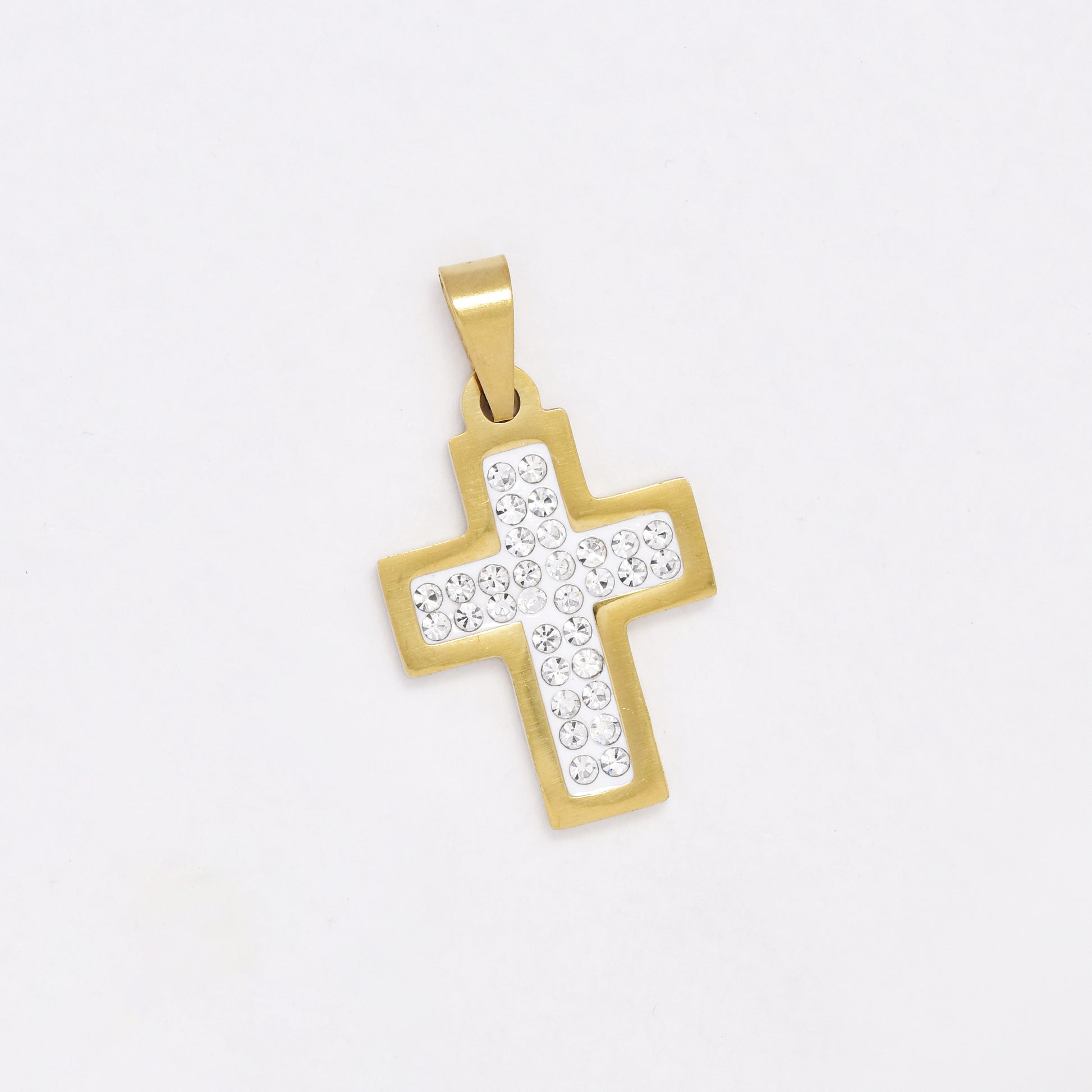 SSYP6080 - St Steel 30mm x 18mm CZ cross pendant