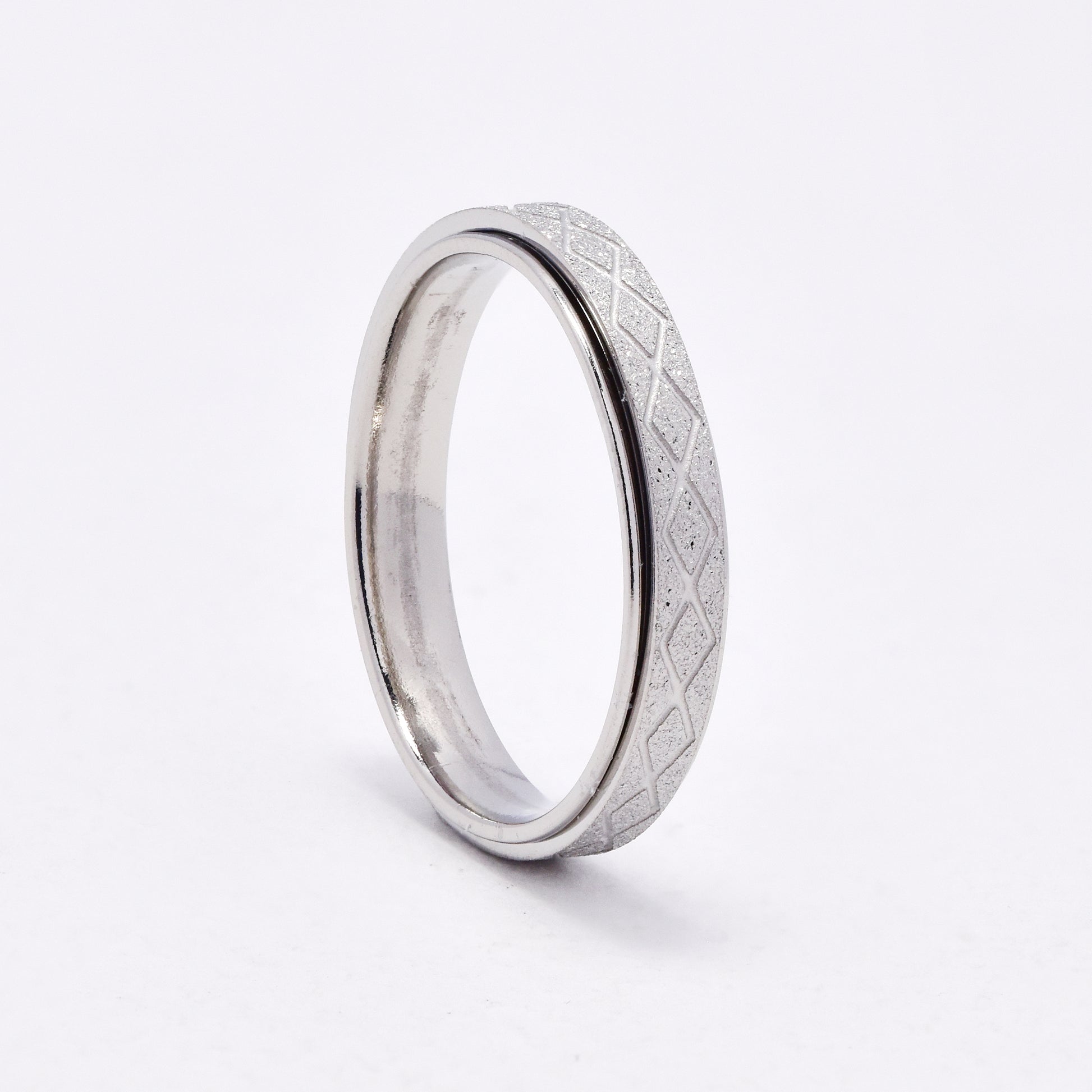 SSYR6704 - St Steel 4mm iced criss-cross pattern spinner ring