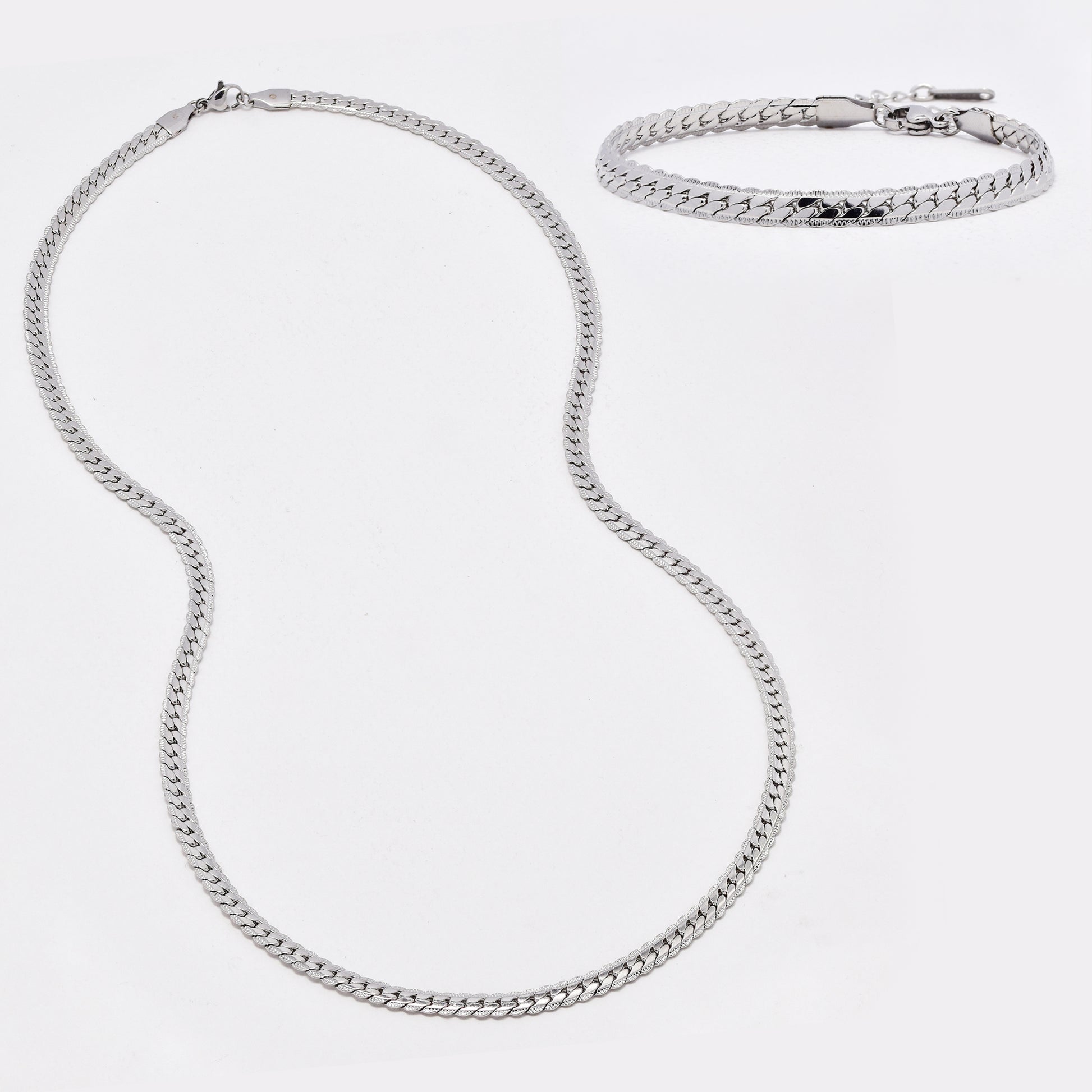 SSYST6491 - St Steel 60cm & 17.5cm x 5mm etched curb necklace & bracelet set