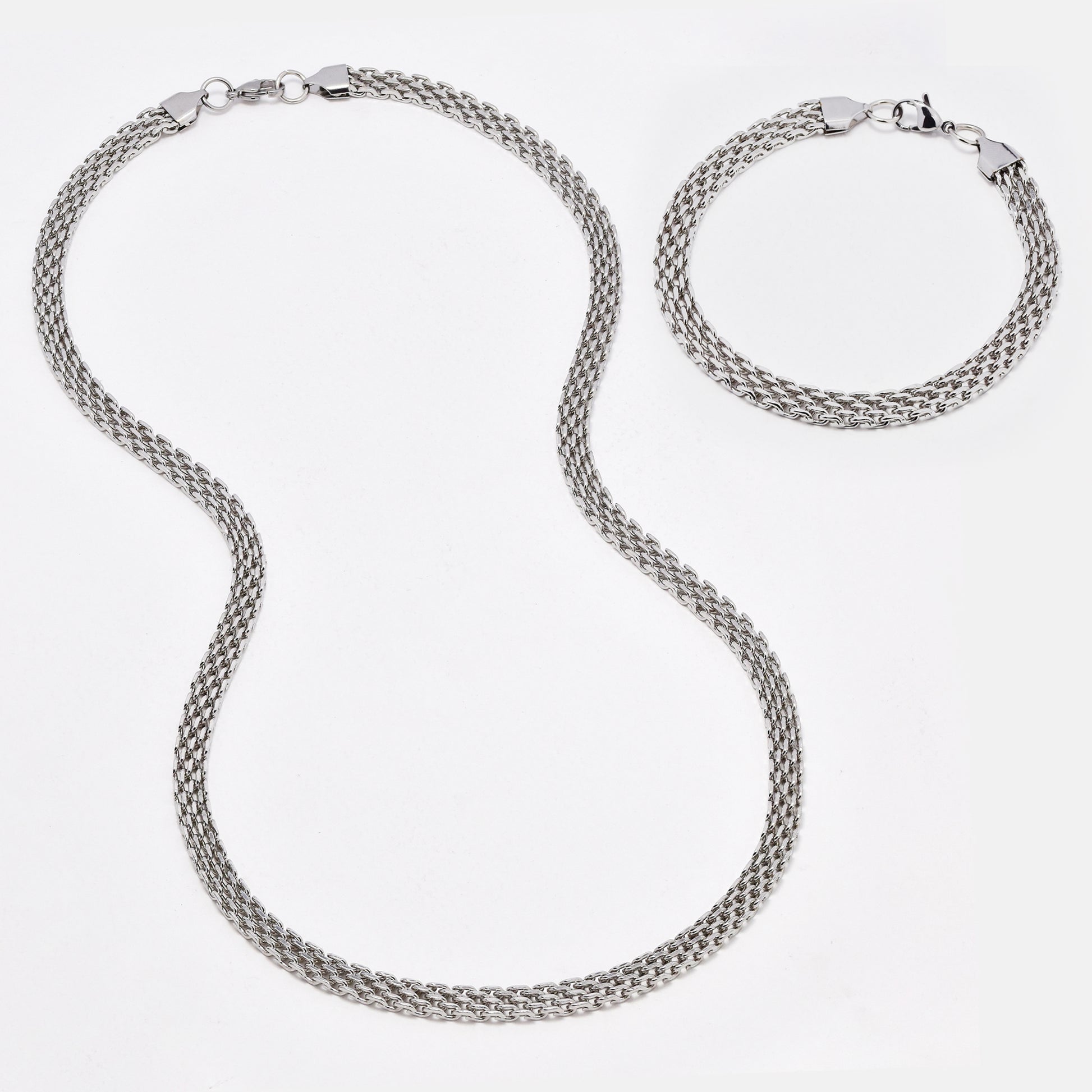 SSYST6498 - St Steel 60cm & 19.5cm x 7mm mesh necklace & bracelet set