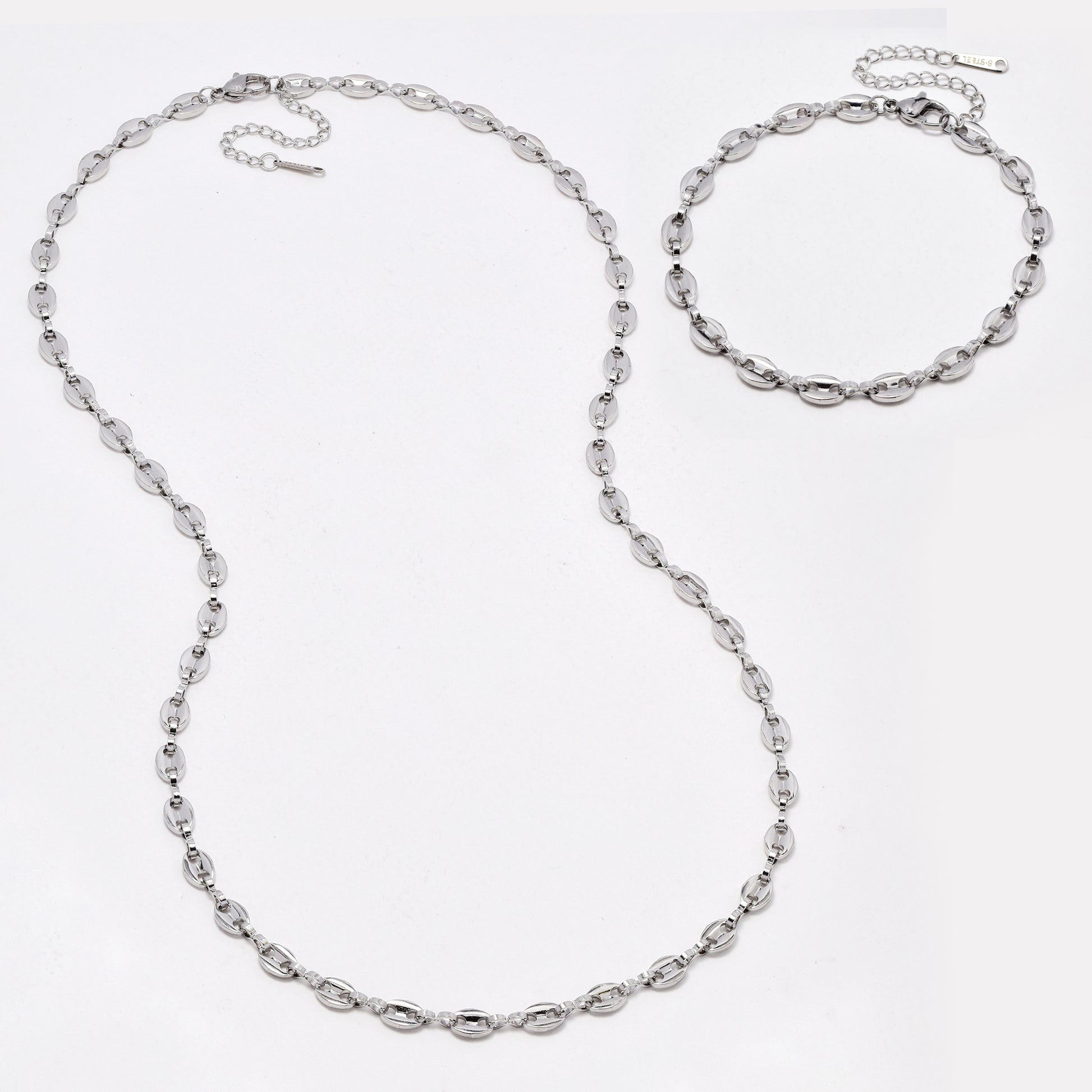 SSYST6500 - St Steel 60cm +5cm & 20cm + 5cm x 4mm gucci necklace & bracelet set