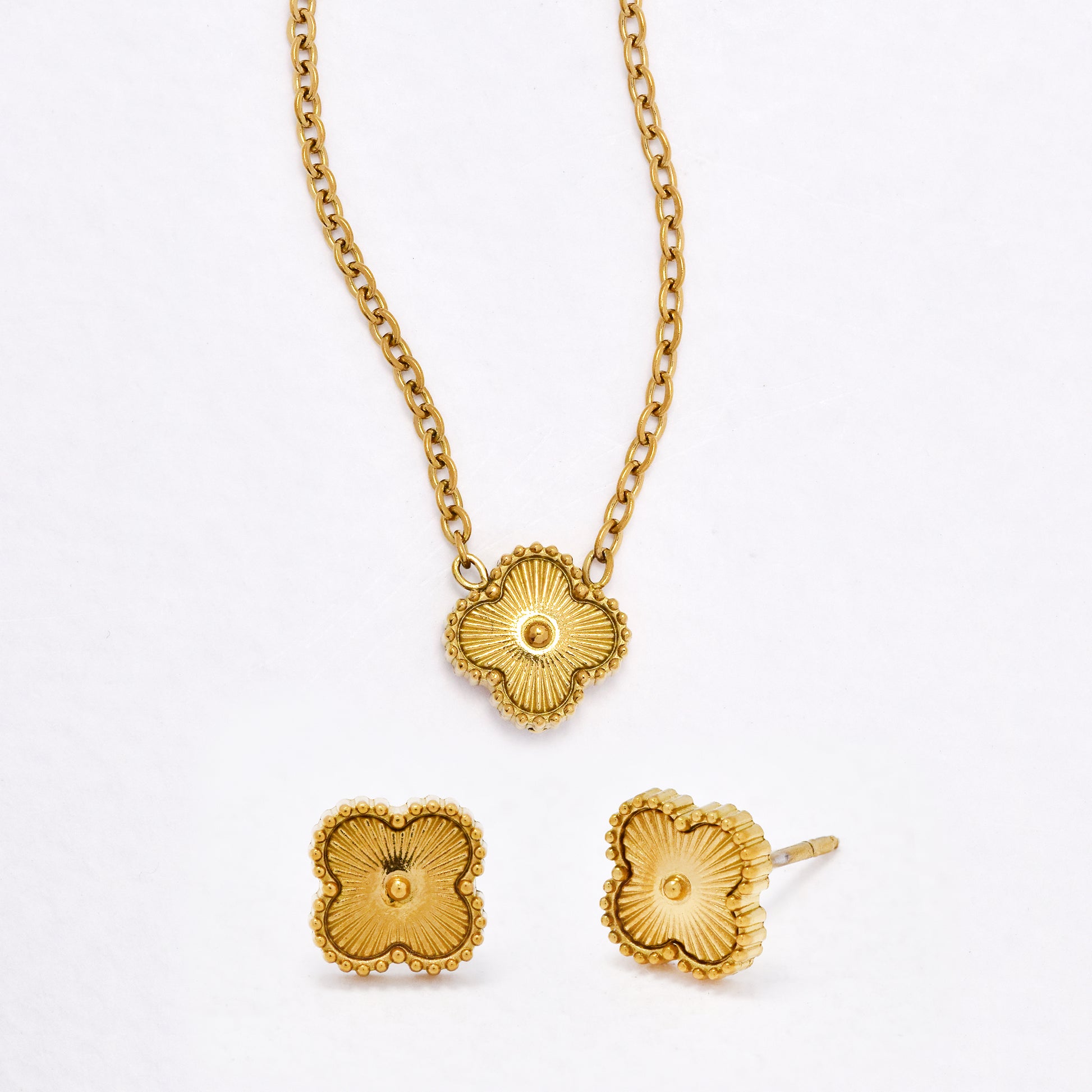 SSYST6558 - St Steel 40cm + 5cm small four-leaf clover earring and necklace set