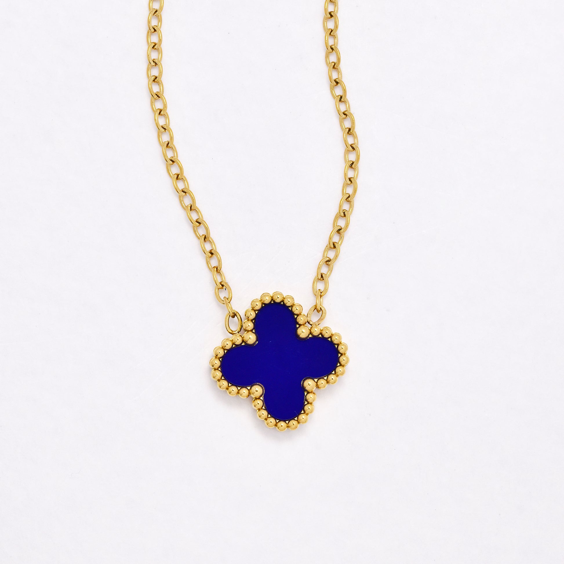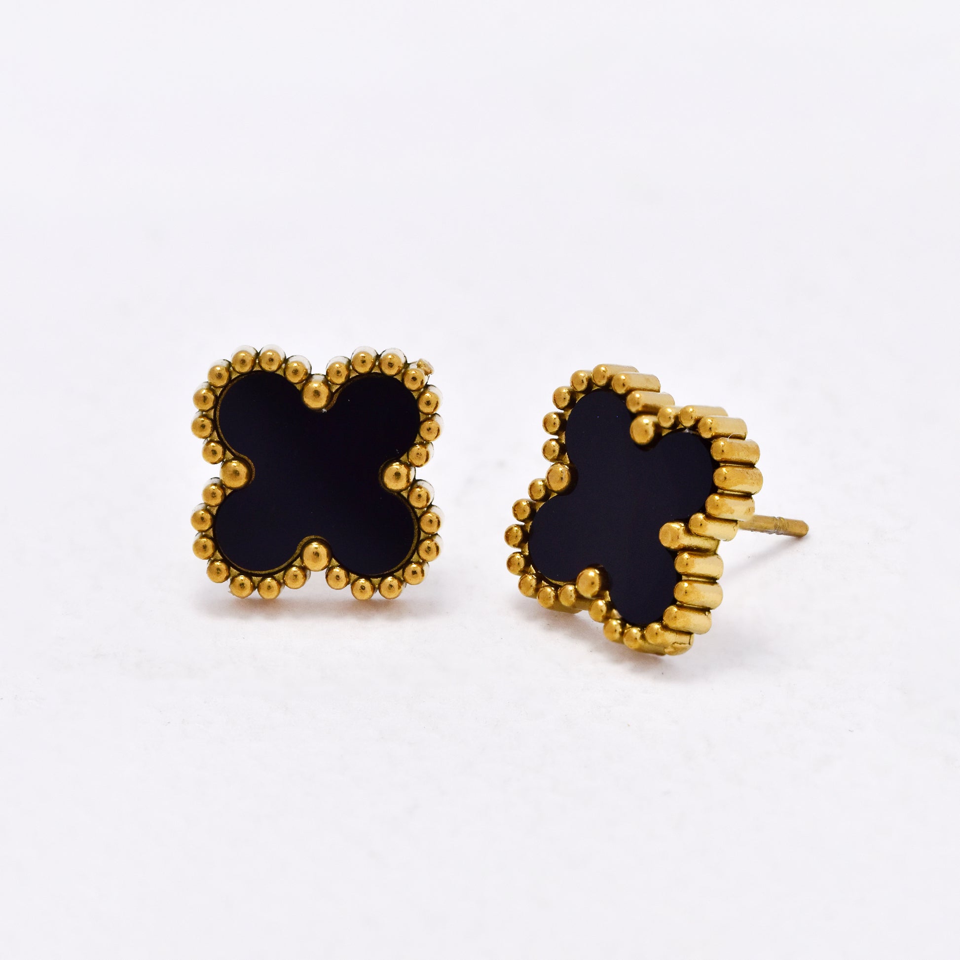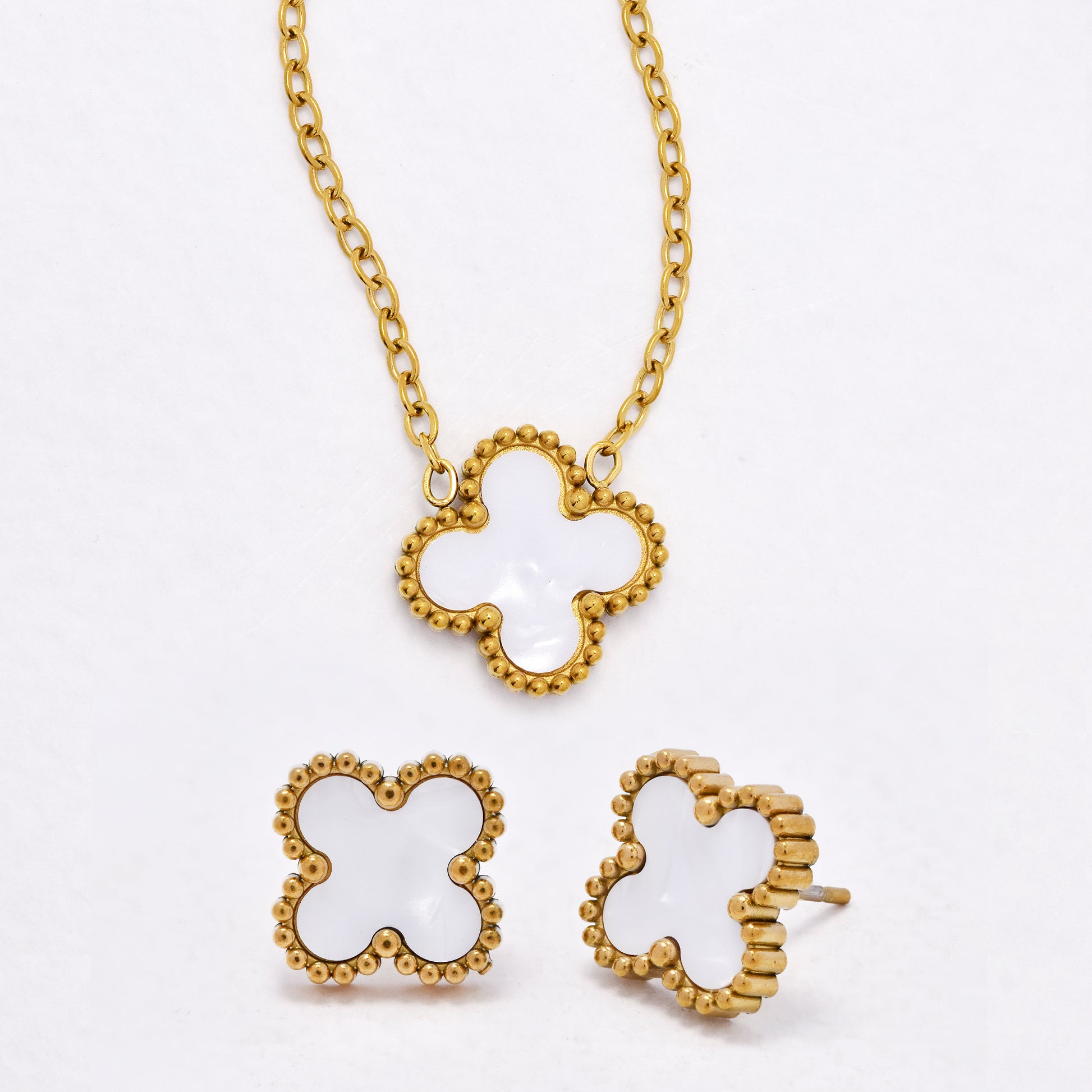SSYST6561 - St Steel 40cm + 5cm medium four-leaf clover necklace & earring set