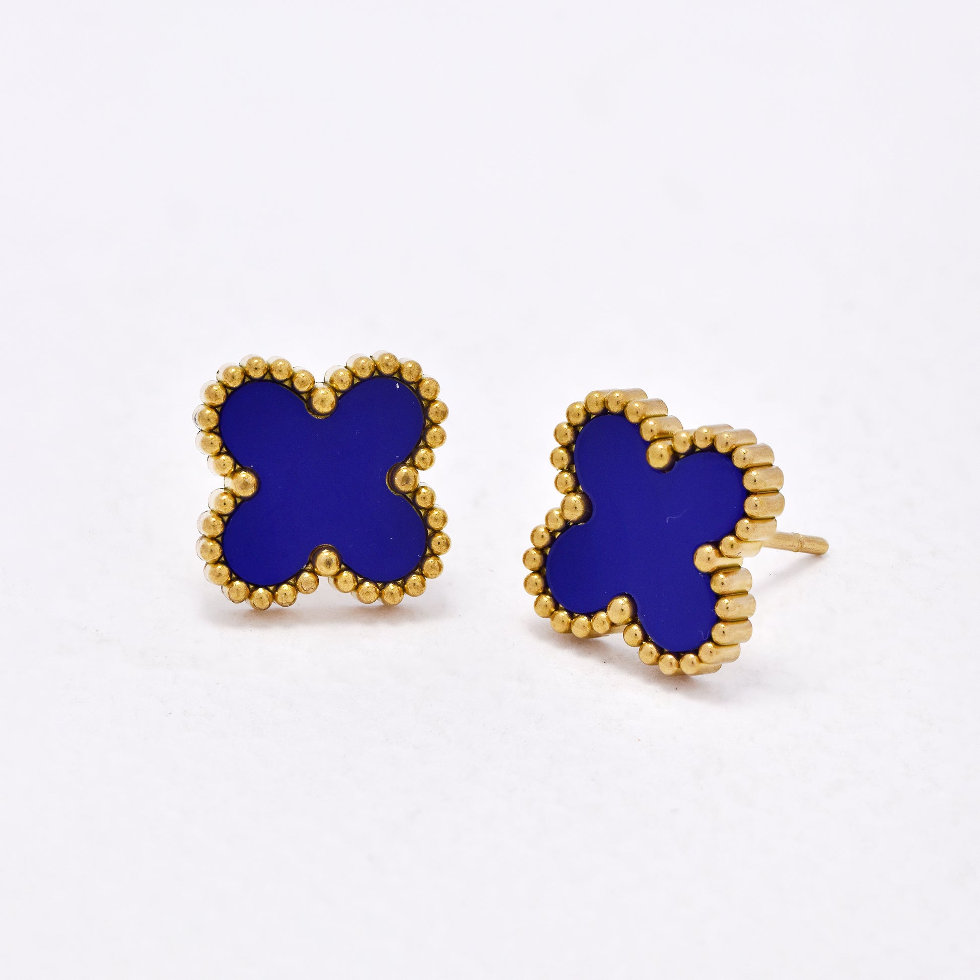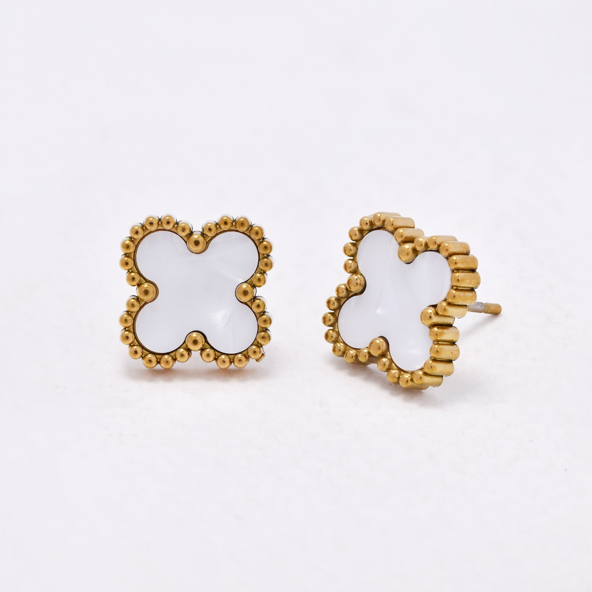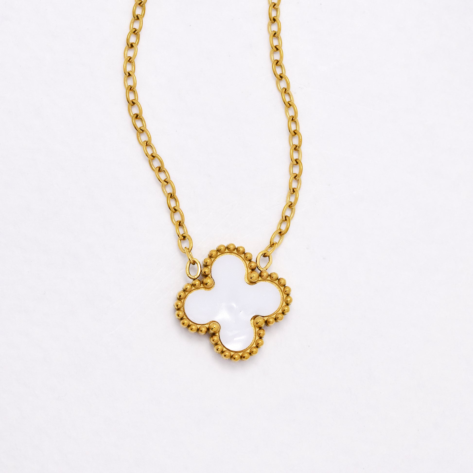 SSYST6561 - St Steel 40cm + 5cm medium four-leaf clover necklace & earring set