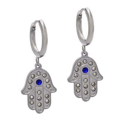 Stainless steel crystal stone Hamsa drop earrings - SSYE4465