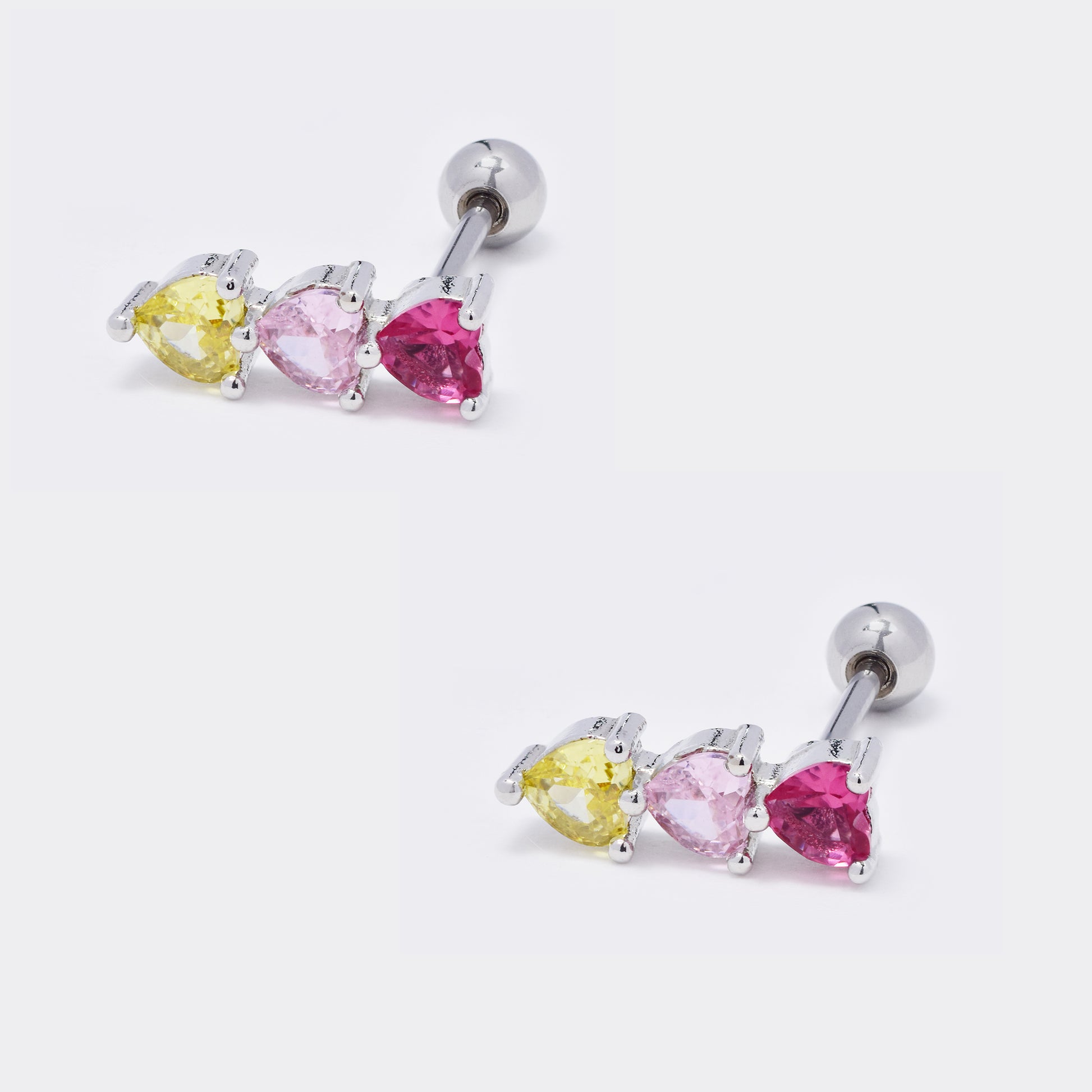 Steel 3 heart colour cz piercing - 2 pack - SSYBJ5735