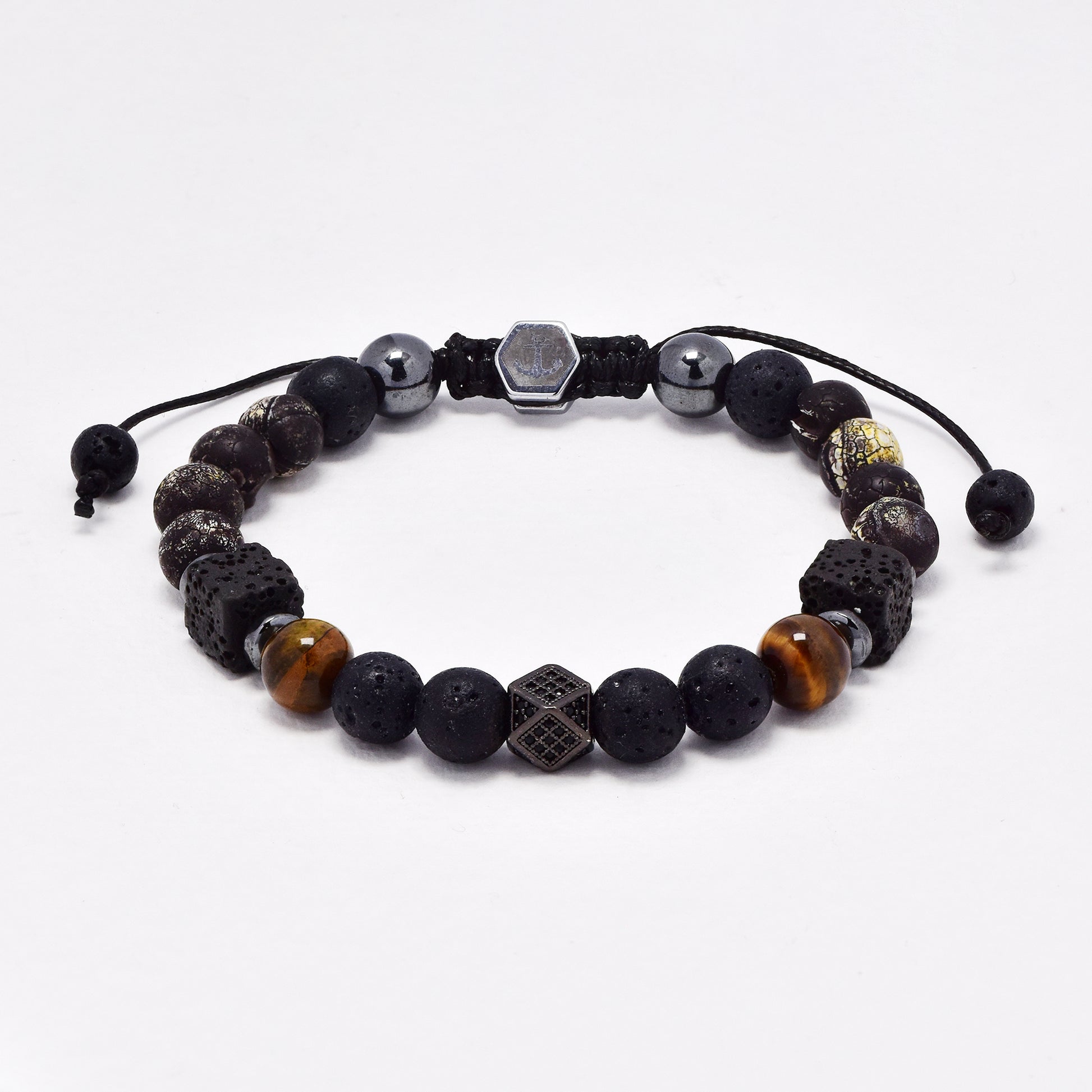 YB6678 - Volcanic rock & tiger's eye adjustable bracelet